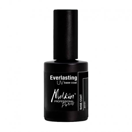Exfollier l’ongle avec un buffer. Puis appliquer une couche fine de base coat, catalyser 2 minutes sous la lampe à UV. Appliquer ensuite le vernis à ongle semi permanent.